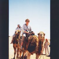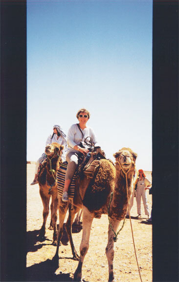 Sur un dromadaire en Tunisie en 1998 lors de notre premier voyage-atelier.