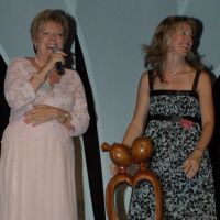 Moi et ma fille Monica lors de cette même journée. Elle souligne les 25 ans en Europe en me remettant une belle giraffe en argent, symbolisant la générosité... Me voilà bien sûr émue de tout ce qu'elle dit (voir prochaine photo).