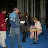À l’automne 2008, lors de ma tournée de conférences européennes. Dédicaces de livres après la conférence de Liège en Belgique.