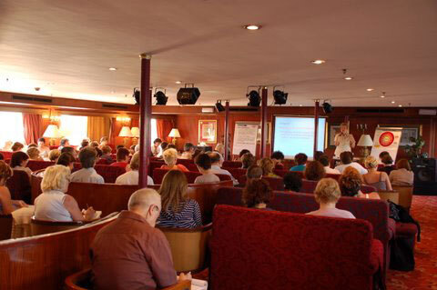 Un autre voyage-atelier en 2009 lors duquel nous avons effectué une croisière privée sur le Nil avec 120 clients d’Écoute Ton Corps. Un bateau complet pour nous! Quel bonheur! La demi-journée quotidienne d’atelier avait lieu dans un bar-salon converti en salle de cours. Ce fut un réel plaisir que de pouvoir regarder le Nil et les dunes chaque jour!